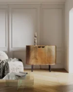 Built in real 100% solid wood with a toughened engineered wood back. Hand-crafted door panels make the cabinet a unique & statement aesthetic. The top can be decorated with photo-frames, lamp or vases. Match them to your existing furniture or display them as an stand-out piece.
