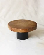 Featuring a wooden top resting on a sturdy wooden stand, perfect for serving cakes , cup cakes or eeven pastries. It also makes for a stunning centre decor piece.