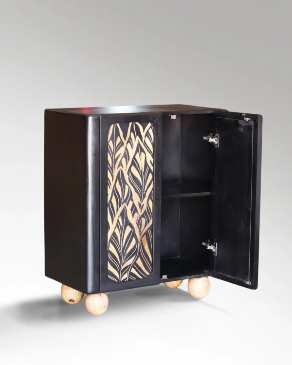 Built in real 100% solid wood with a toughened engineered wood back. The piece showcases an eye-pleasing floral hand-carving at the door panels. The top can be decorated with photo-frames, lamp or vases. This can be the perfect choice for your space.