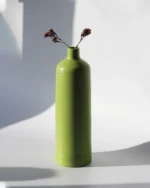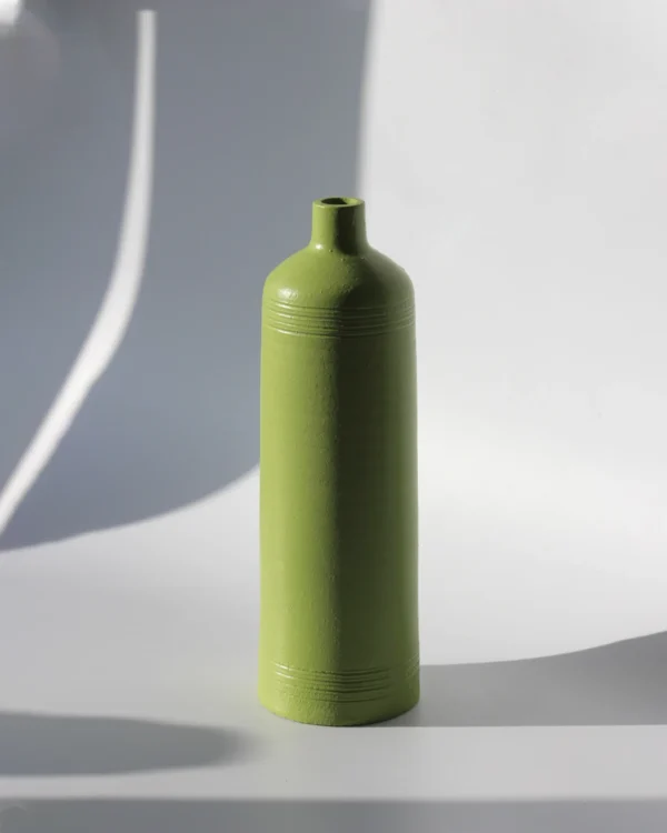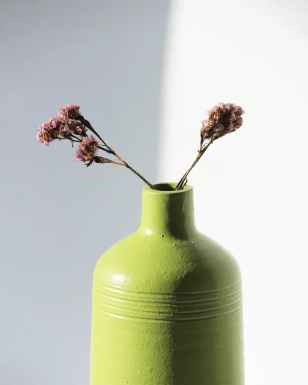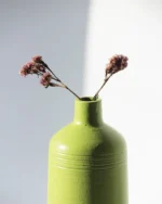 This pottery piece is carefully crafted by hand by skilled artisans. With a timeless shape and a vibrant shade, this green colour vase is a chic yet classic addition to your home. Clubbing the vases together with contrasting coloured artificial flowers or fresh flowers can add a decor element to any library or a bedroom.