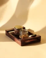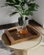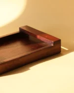 Multi purpose trays with modern spill proof decorative designy for serving food and drinks and can be used anywhere in multiple ways. These trays are made with high quality durable wooden made to last years and years.