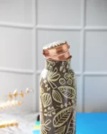 Presenting a lovely green leaves, this artsy piece will stand out wherever you place it. The antibacterial properties of copper make it a perfect metal to store water. Enjoy the richness of our 100% Pure Copper products.