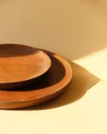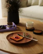 The wooden plates are inspired by organic forms and designed for everyday use. The round-shaped wooden plates provides ample space for plating pizzas or burgers and snacks. This is a must for your beautiful tableware. This product has been handwrought by experienced and well-known artisans.