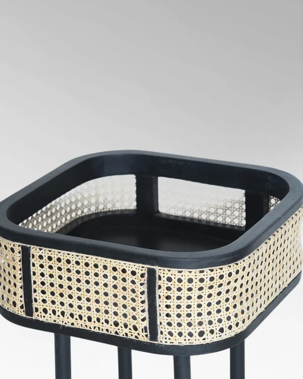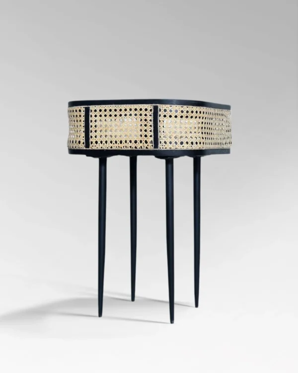 A functional living room/bedroom solution, use it as a side table or and end table near couch. Crafted from solid, sustainably sourced mango wood and natural cane. A furniture piece that has warmth and modern expression to spark conversations.