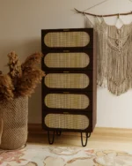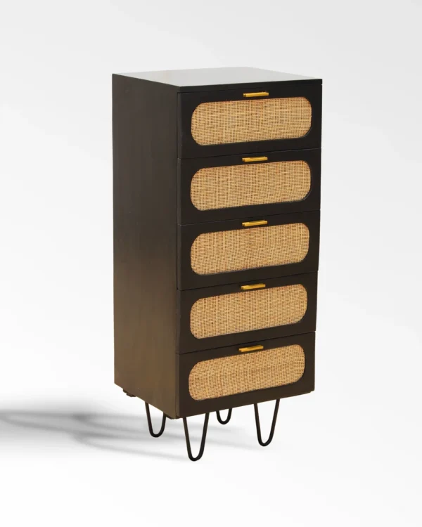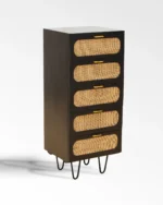 Our Rustic Rush drawer chest lend a warm organic look to a space. Handcrafted by skilled artisans in a straightforward pattern is a modern classic. This cabinet features five drawers with good storage space for books, files and more. Get yours today at Mango Trunk!