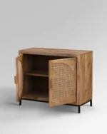 Bring timeless, mid century style to your home with this handmade wooden bed side. Crafted with hand with beautiful cane work, it adds charm and sophistication to any room. Perfect for storage or everyday living.